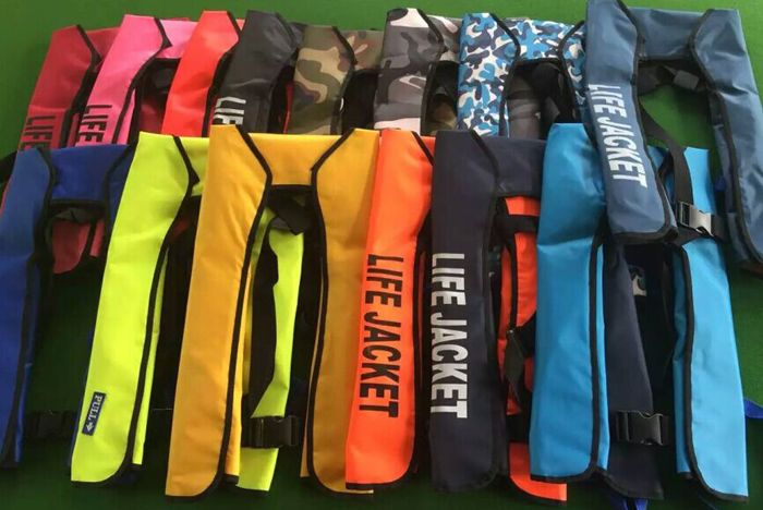 自動氣脹救生衣使用高強抗拉TPU復合面料,配備微型高壓儲氣鋼瓶及充氣閥門,采取高周波模具熱合新工藝,成衣符合SOLAS公約和IMO最新規范要求,經“CCS”認證被允許在船界、艦艇、海上緝私、水上施工、水上運動、打撈、領航、抗洪防汛等領域應用。主要特點:小巧輕盈穿著舒服便利;落水快速充氣將人體自動扶正面部朝天高出水面120mm,氣囊浮力大、氣密好,24小時浮力降低小于百分之五,各項技術性能達標。目前已被船界認同,是傳統泡沫救生衣的更新 主要性能指標: 1、氣囊充氣容積:16.5升2、囊內壓縮氣體重量:33克3、充氣時間5秒4、浮力:16kg5、囊內氣體保存時間:5天6、高壓儲氣鋼瓶:一次性,可更換7、水電池燈照明時間:8小時(符合國際海事組織標準)8、氣囊內大氣壓:0.2kg 9、頭肩部浮出水面后傾角:30—45度10、口部與水面距離:120mm 11、廣泛適用于:客貨輪、游艇、水警、水上緝私艇、水上施工作業、海上鉆井平臺、抗洪救災、水文、水利等場所救生。